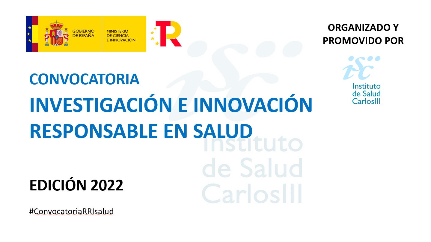 El Instituto de Salud Carlos III (ISCIII) acaba de abrir la convocatoria de Investigación e Innovación Responsable (RRI) en Salud 2022 con el objetivo de reconocer, apoyar y fomentar el trabajo que realizan los Institutos de Investigación Sanitaria (IIS) para integrar en su actividad los principios de RRI. Esta nueva convocatoria sigue la senda marcada por la primera, realizada en 2020, en la que fueron galardonados proyectos de tres IIS.